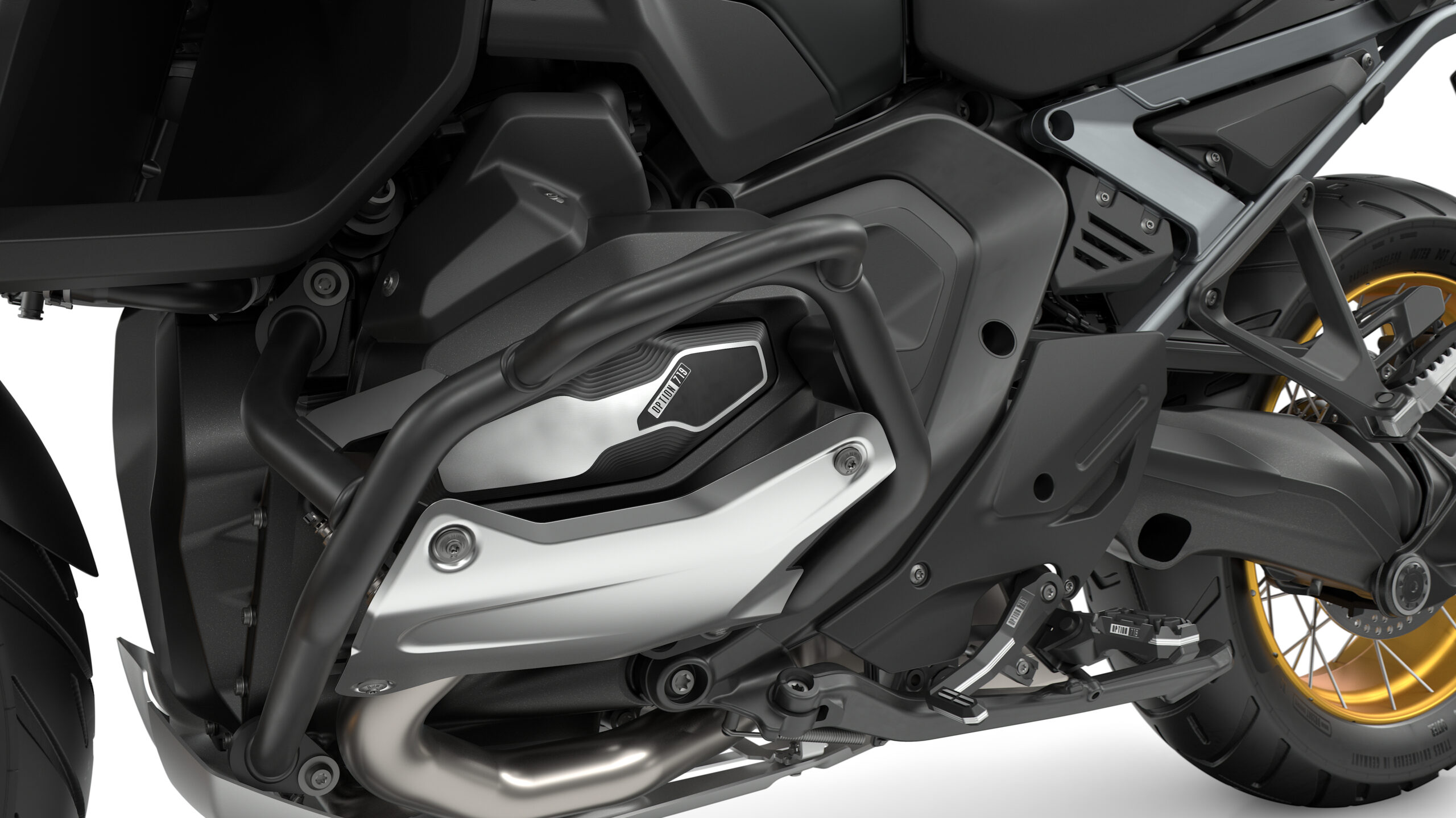 Высокое защитное стекло оградит водителя от встречного ветра. В защитные элементы для рук мотоциклиста встроены указатели поворота. Рычаги тормоза и сцепления можно отрегулировать под личные параметры. С помощью ассистента переключения передач упрощается процесс управления байком. Спереди установлена регулируемая вилка, а сзади Paralever (консольный маятник с моноамортизатором).