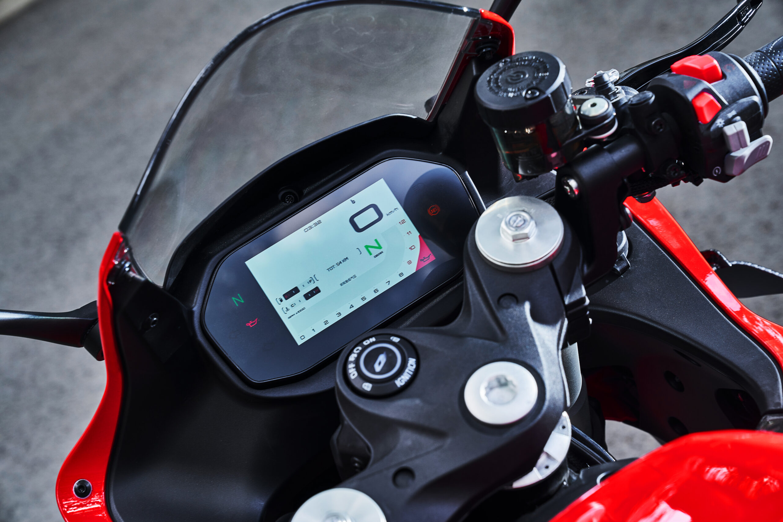Спортивный силуэт дополняет цифровая приборная панель, которая отображается на TFT-дисплее 5 дюймов. Отображение информации происходит максимально понятно для водителя. Комфортное считывание данных выполняется при любом освещении. Спортивное шасси отличается оптимальным балансом. Комбинированная рама повышенной жесткости изготовлена из алюминия и стали. Дисковые тормоза обеспечивают быстрое замедление мотоцикла на любом типе дорожного покрытия. Четырехпоршневые суппорты Brembo работают совместно с ABS Bosch.